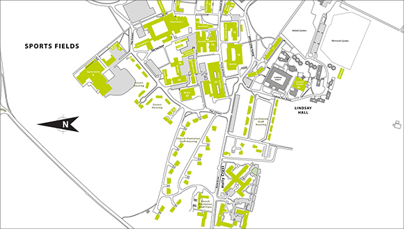 The map below shows the area of the campus that is part of the HyDeploy project.